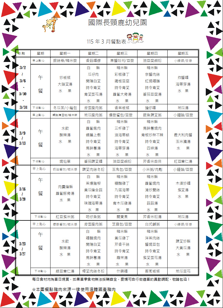本月餐點表下載